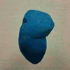 Una pietra blu posizionata su uno sfondo blu uniforme.